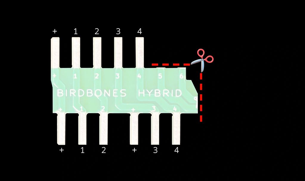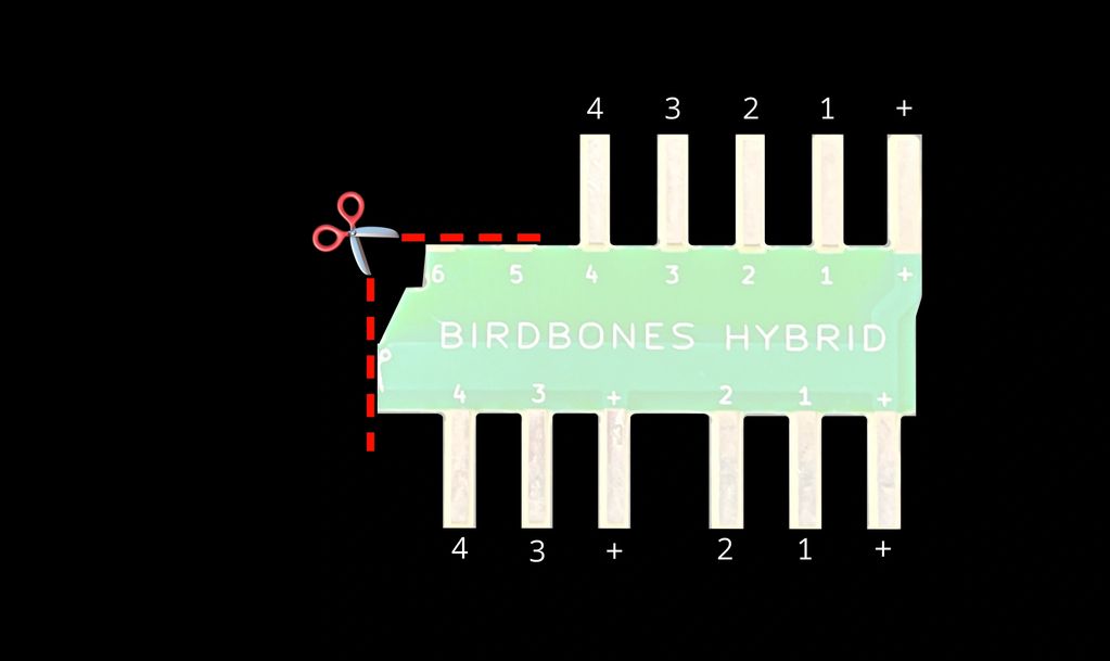 BirdBones HYBRID Cut System allows for many configurations. Simply use flush cutters to remove the channel 5,6 hybrid set up, cut post 5 and 6 for a 4 channel 2 Hybrid set up. Cut to whatever your needs may be.